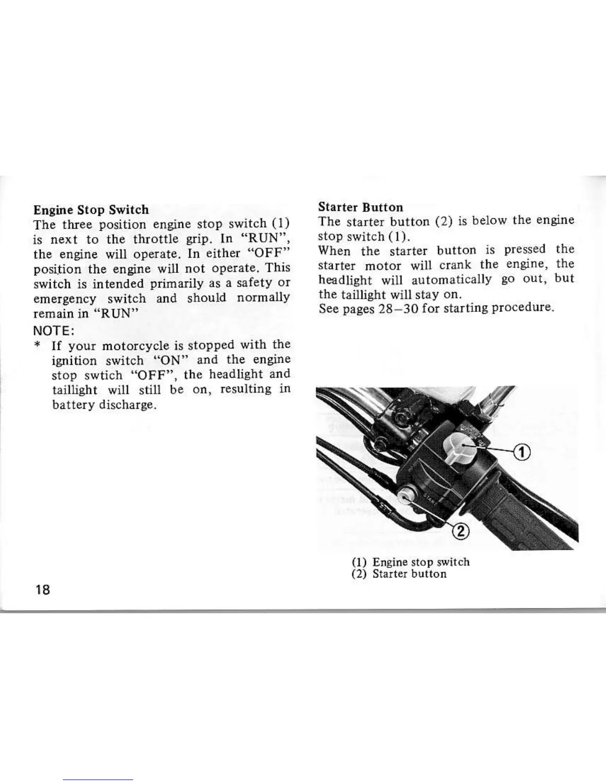 Honda cb650 - ENGINE CONTROLS; ENGINE STOP AND STARTER BUTTONS