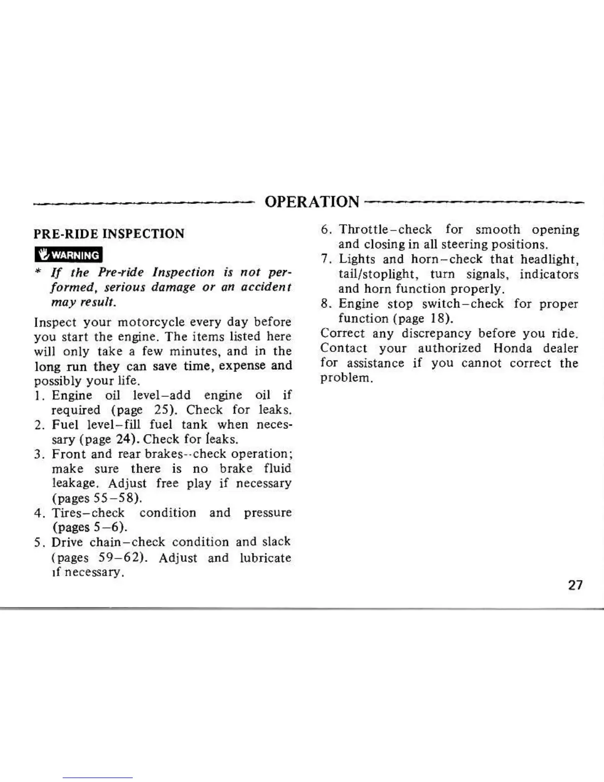 PRE.RIDE INSPECTION