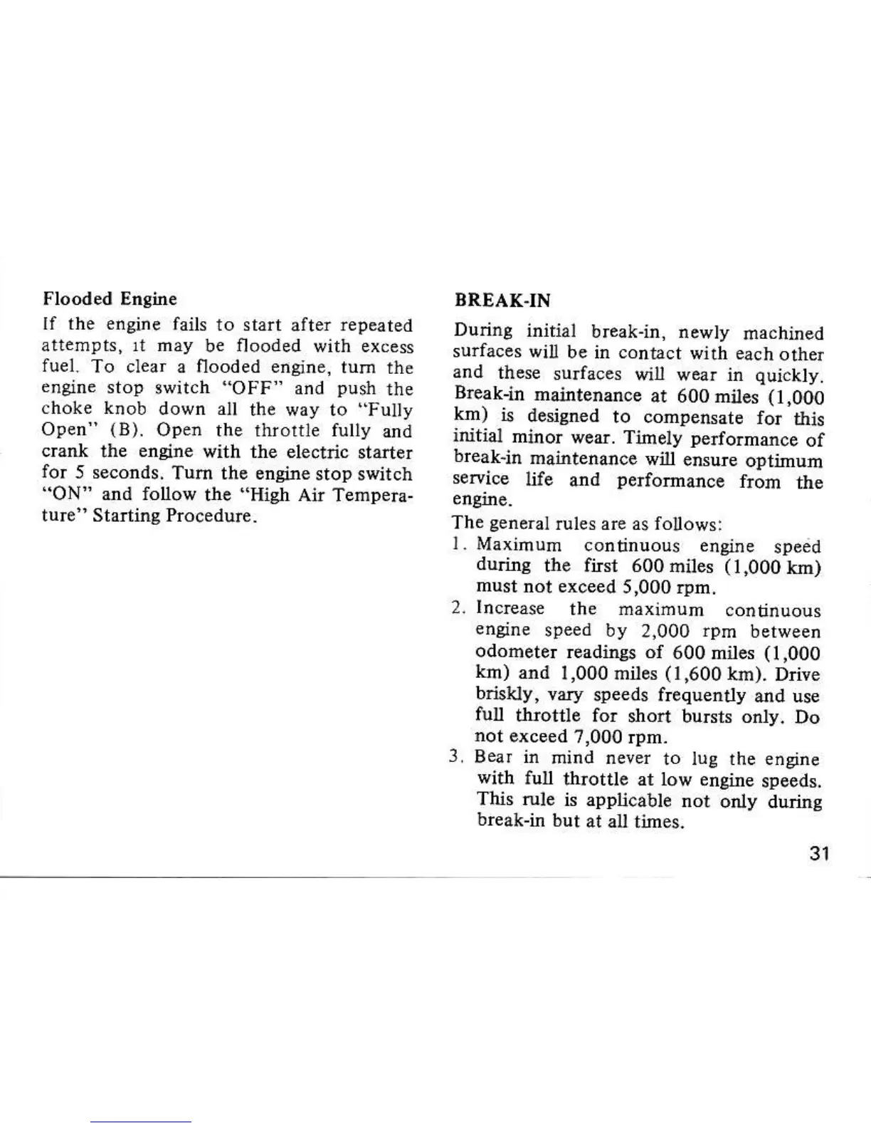 Honda cb650 - ENGINE STARTING ISSUES AND BREAK-IN; BREAK-IN PROCEDURE
