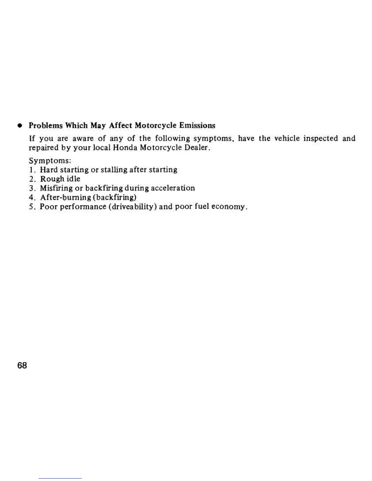 Probl.ms Which May Affcct Motorcycle Enissio6