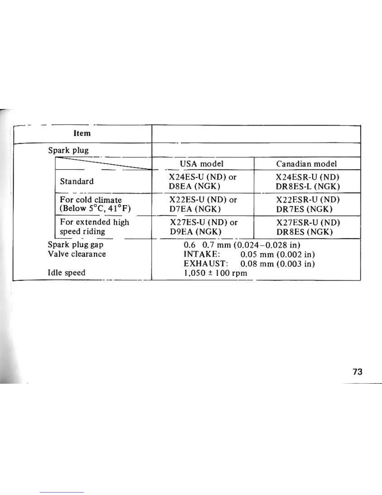 Honda cb650 - Spark Plug Data