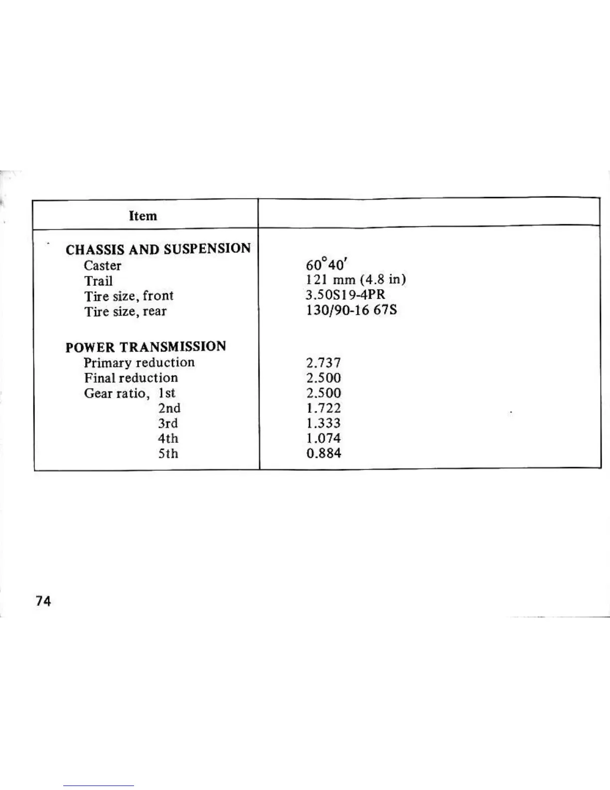 Honda cb650 - Chassis and Suspension Data; Power Transmission Data