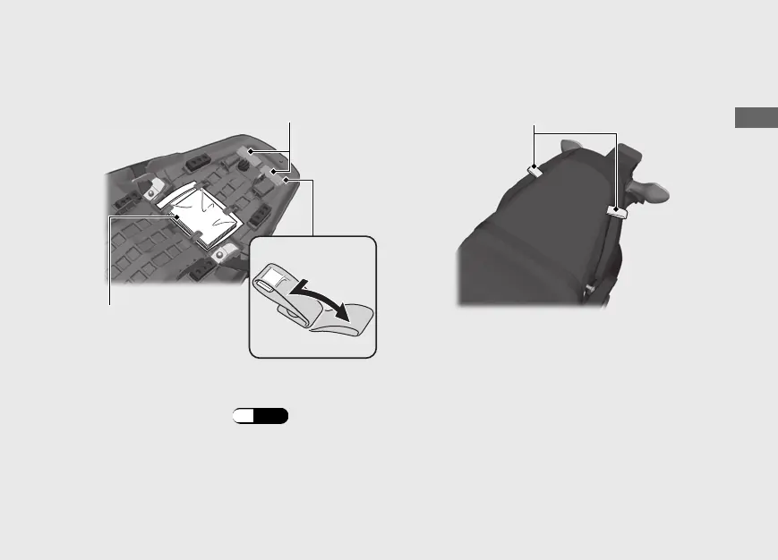 The document bag and luggage tie-down hooks are located on the underside of the seat.