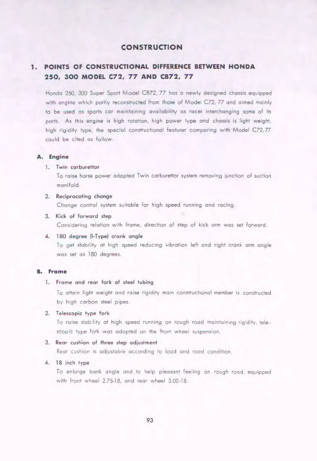 Honda CB72 - Constructional Difference between Models