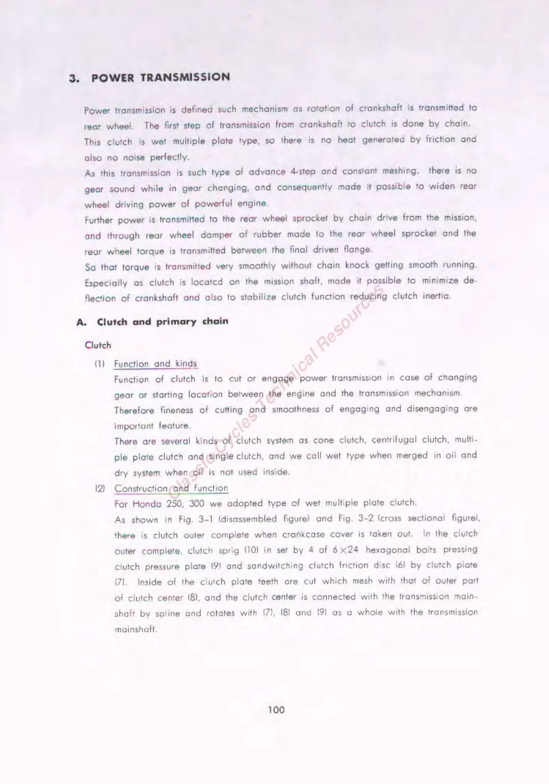Honda CB72 - Power Transmission; Clutch and Primary Chain