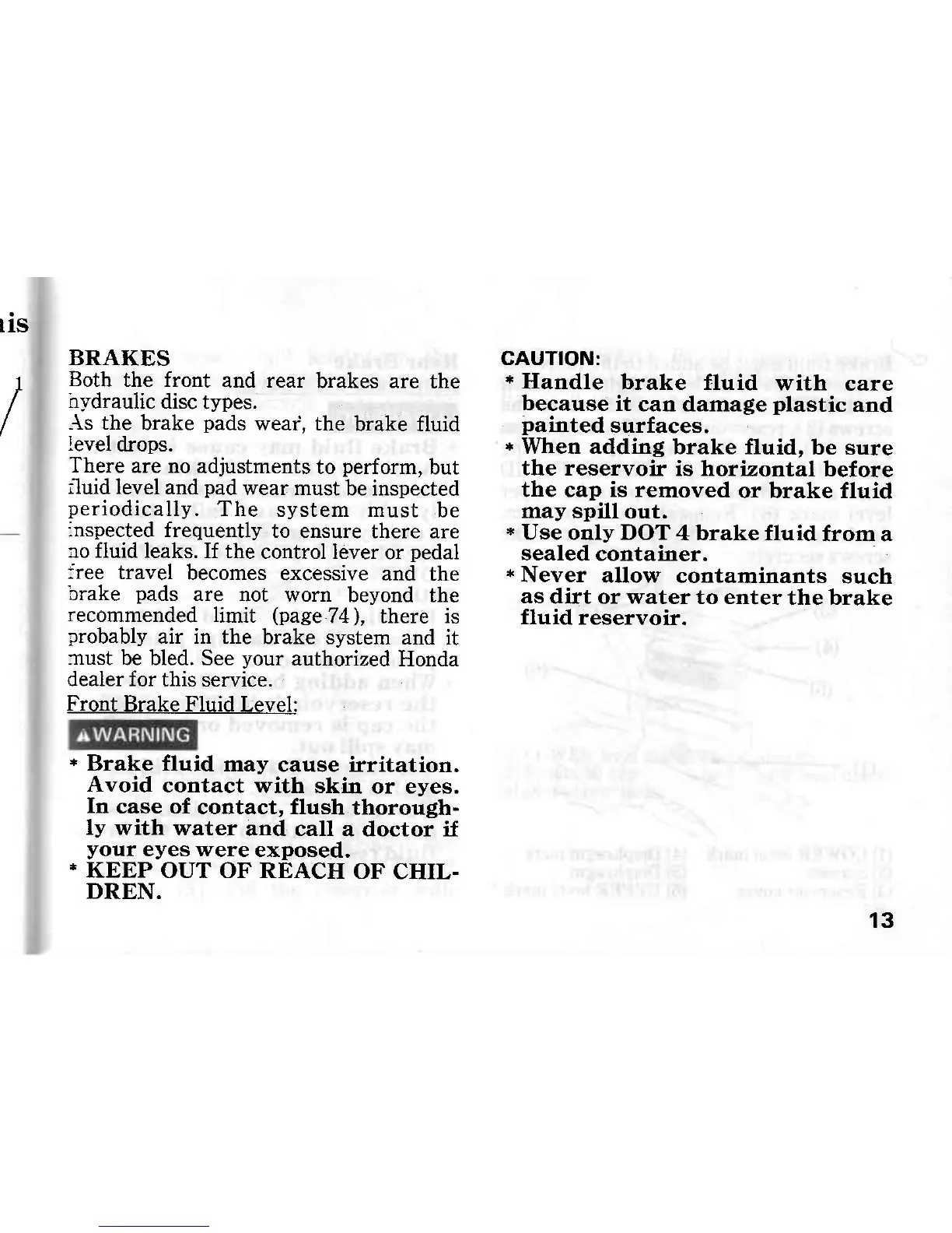 Honda CB750F2 - Brakes; Front Brake Fluid Level