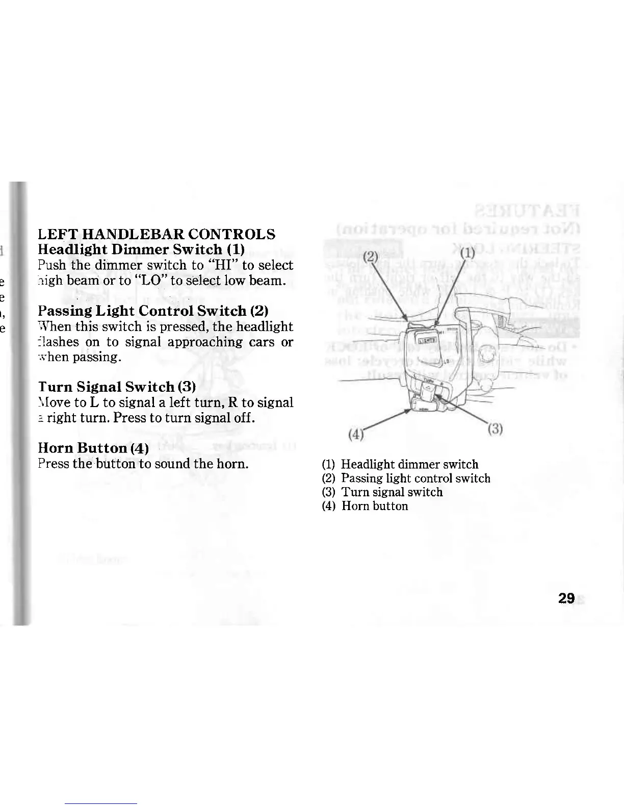 Honda CB750F2 - Left Handlebar Controls; Headlight Dimmmer Switch; Turn Signal Switch