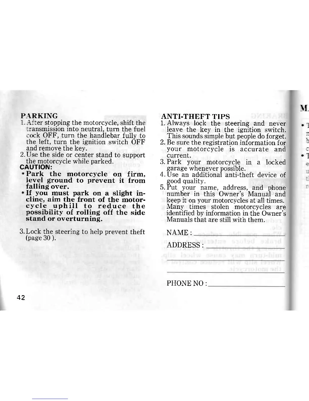 Honda CB750F2 - Parking; Anti-Theft Tips