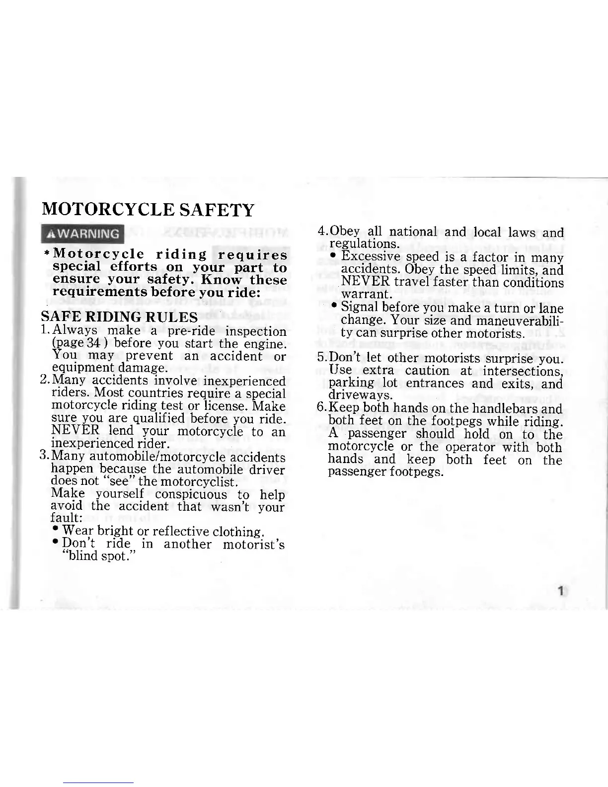 Honda CB750F2 - Motorcycle Safety Guidelines