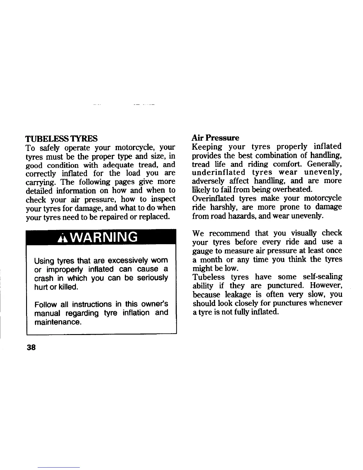 Honda CB900F - Tubeless Tyres; Air Pressure