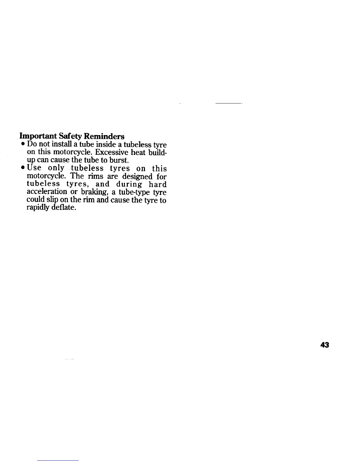 Honda CB900F - Important Safety Reminders