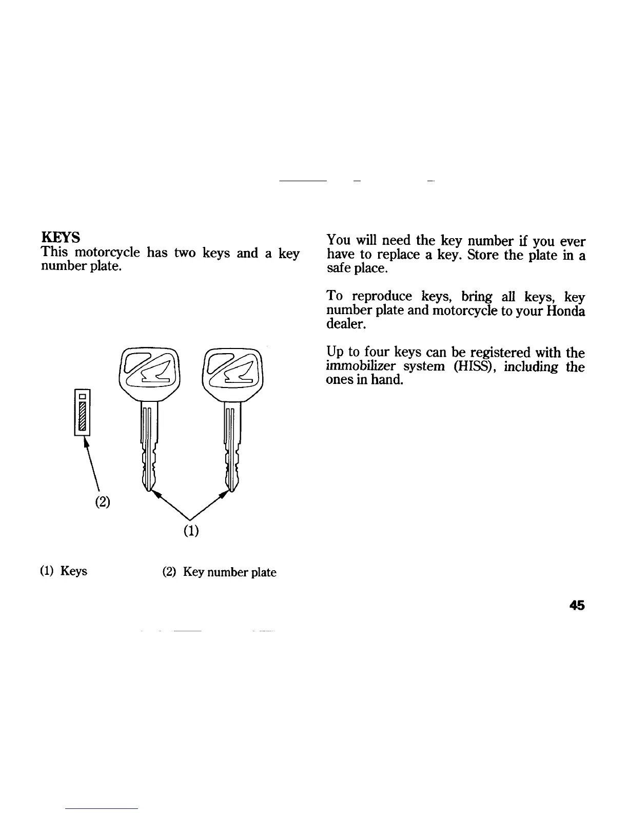 Honda CB900F - Keys