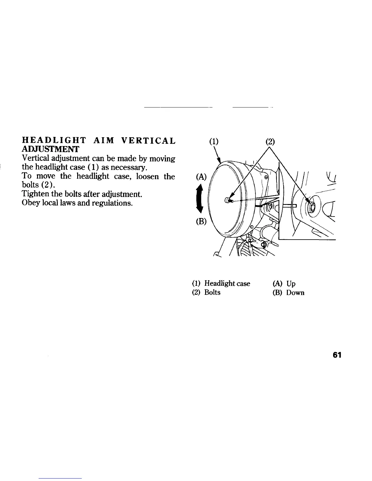 Honda CB900F - Headlight Aim Vertical Adjustment