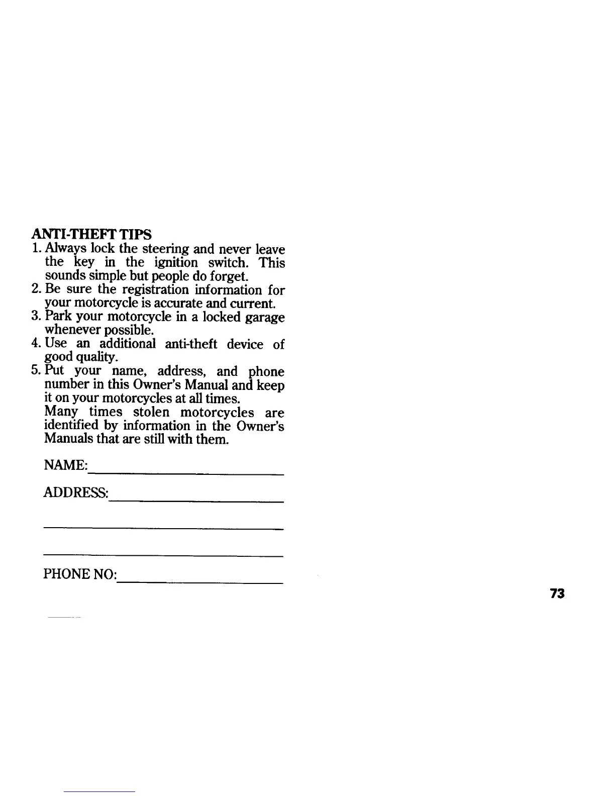 Honda CB900F - Anti-Theft Tips