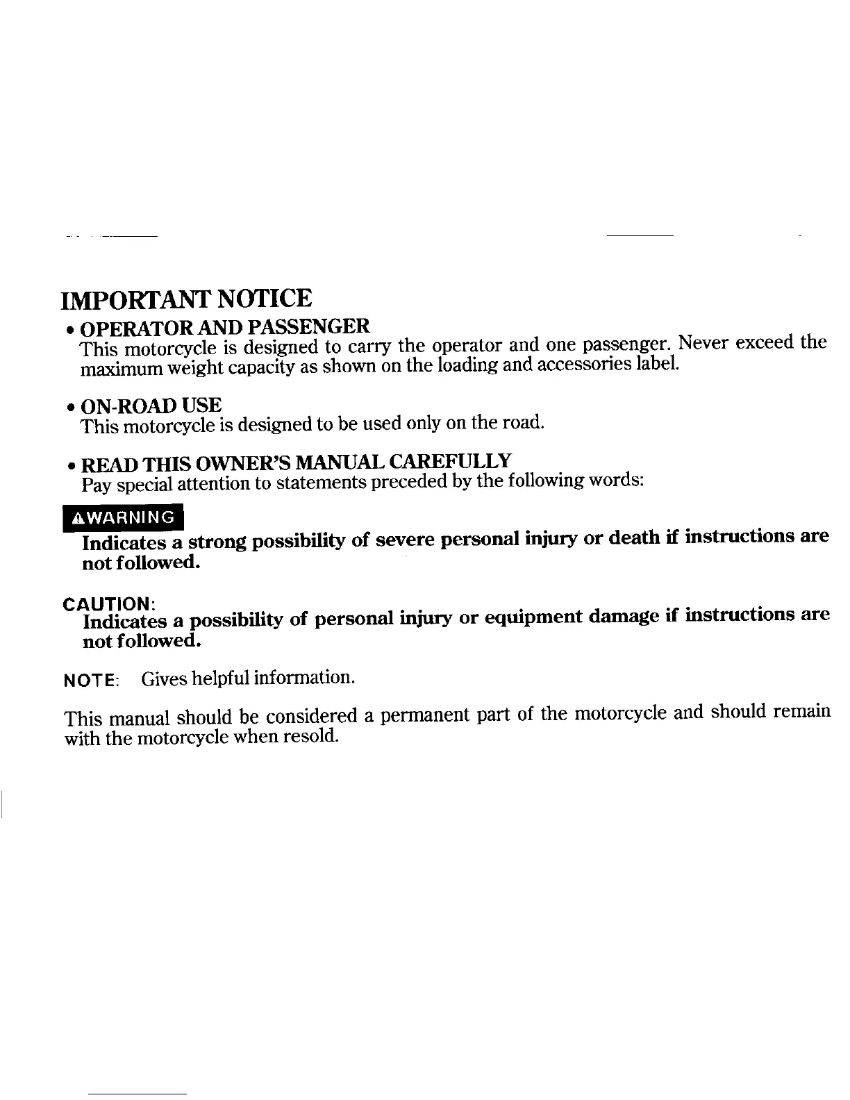 Honda CBR600F - Key Notices and Warnings; Safety and Usage Precautions