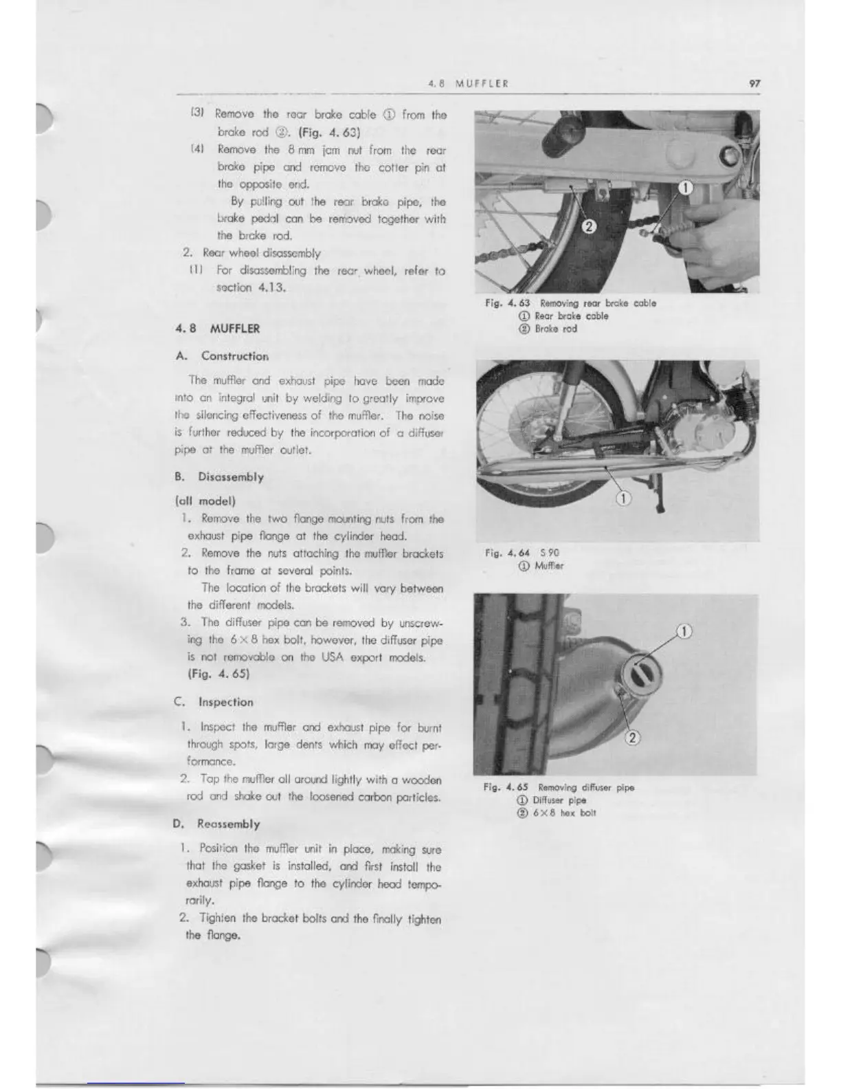 Honda CD90 - Muffler Construction;Disassembly;Inspection;Reassembly; Removing Rear Brake Cable; Removing Difuser Pipe