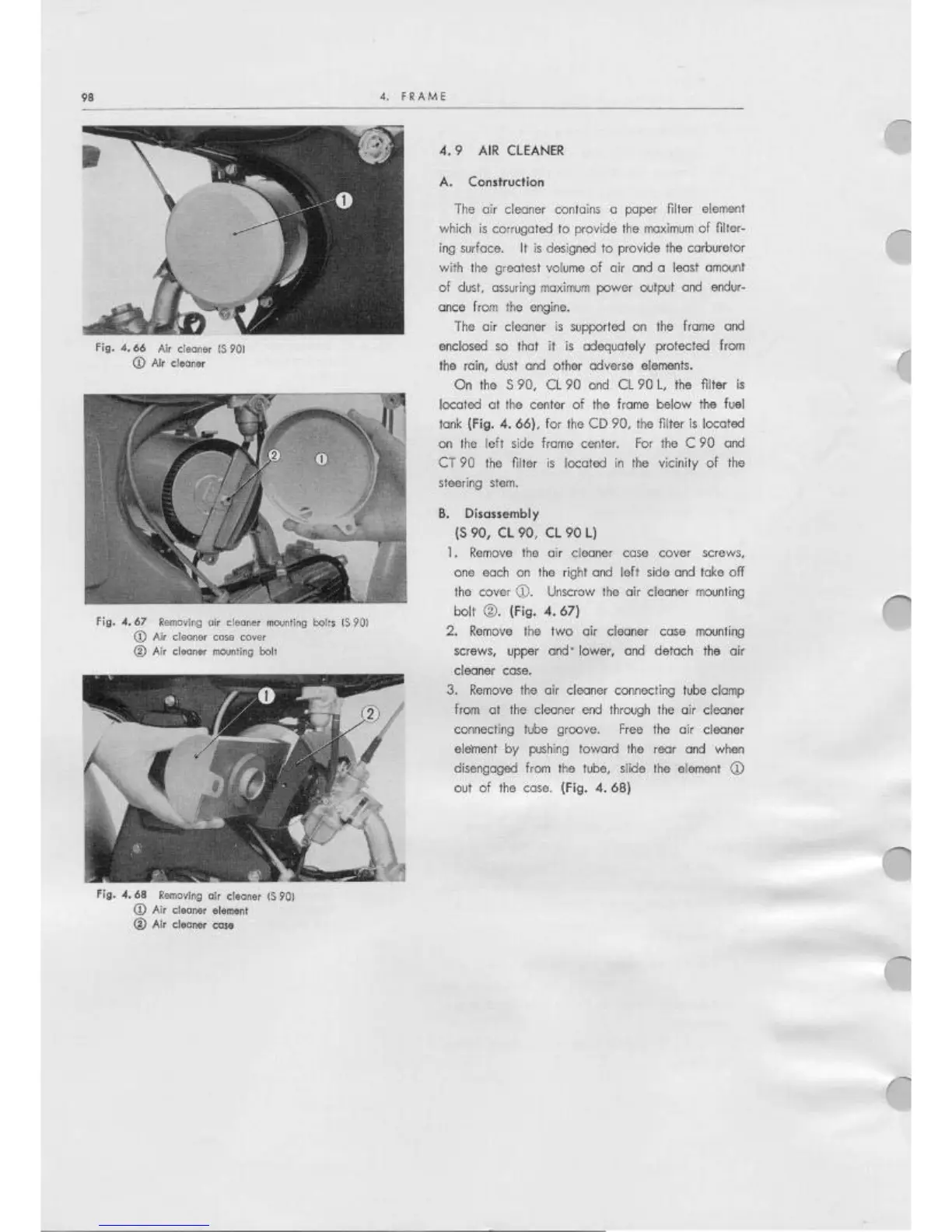 Honda CD90 - Air Cleaner Construction;Disassembly; Removing Air Cleaner Mounting Bolts