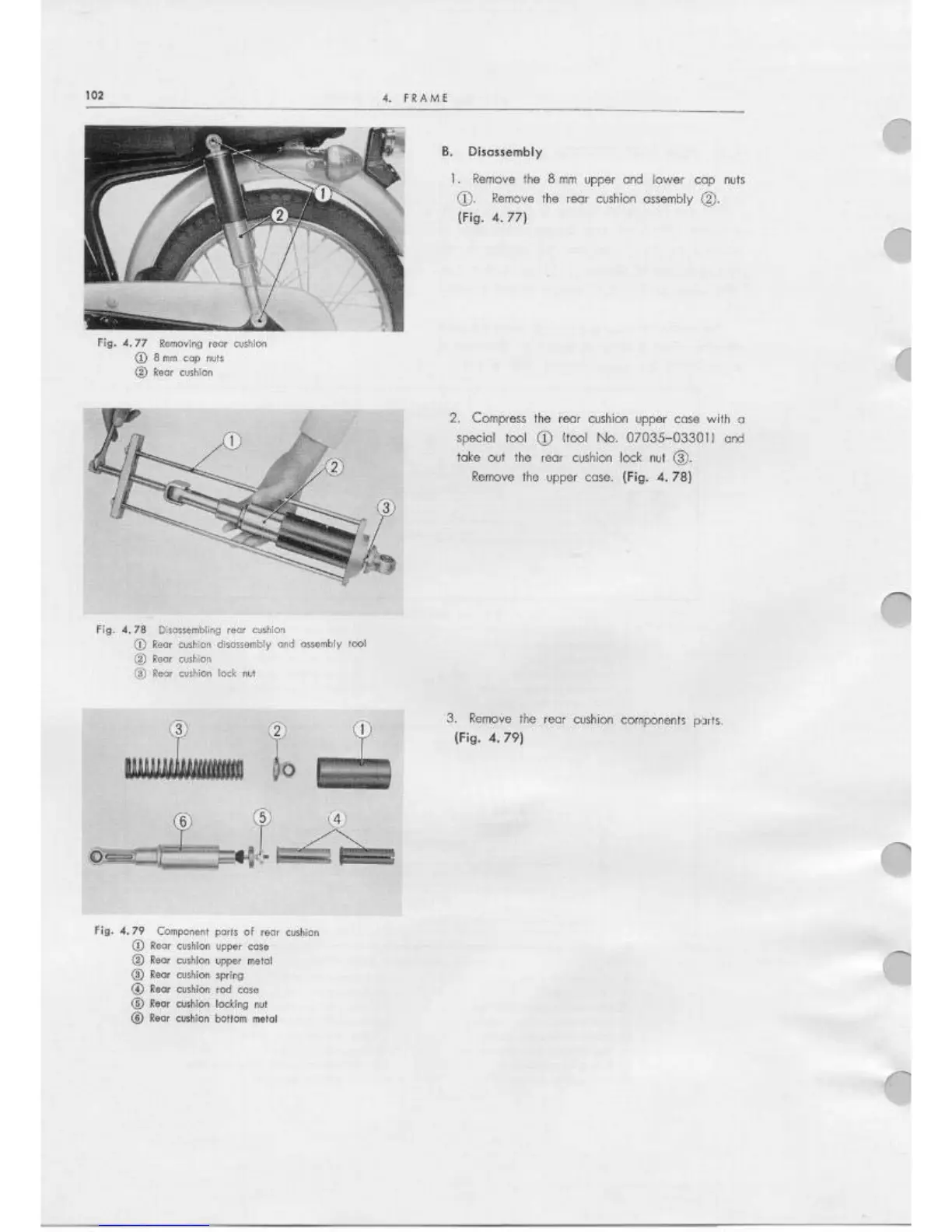 Honda CD90 - Rear Fork Cushion Damper Disassembly; Removing Rear Cushion; Disassembling Rear Cushion; Component Parts of Rear Cushion