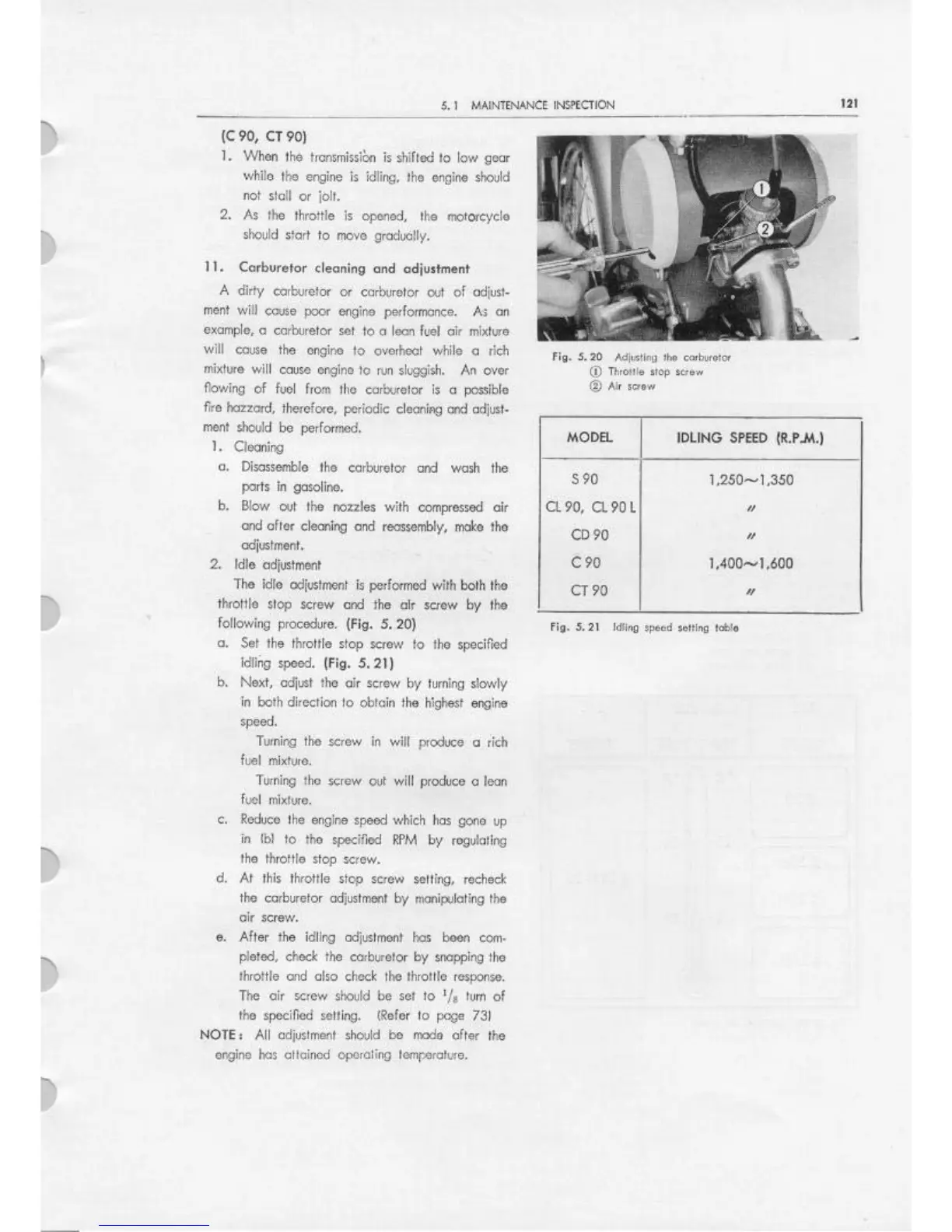 Honda CD90 - Carburetor Cleaning and Adjustment; Adjusting the Carburetor; Idling Speed Setting Table