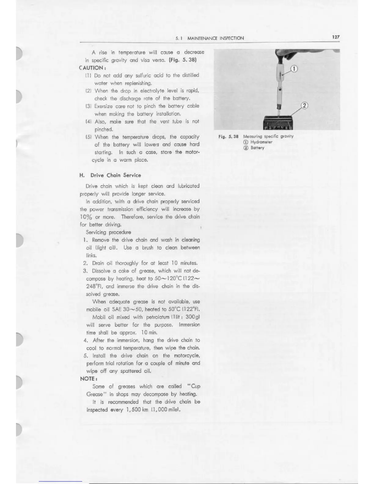 Honda CD90 - Drive Chain Service; Measuring Specific Gravity