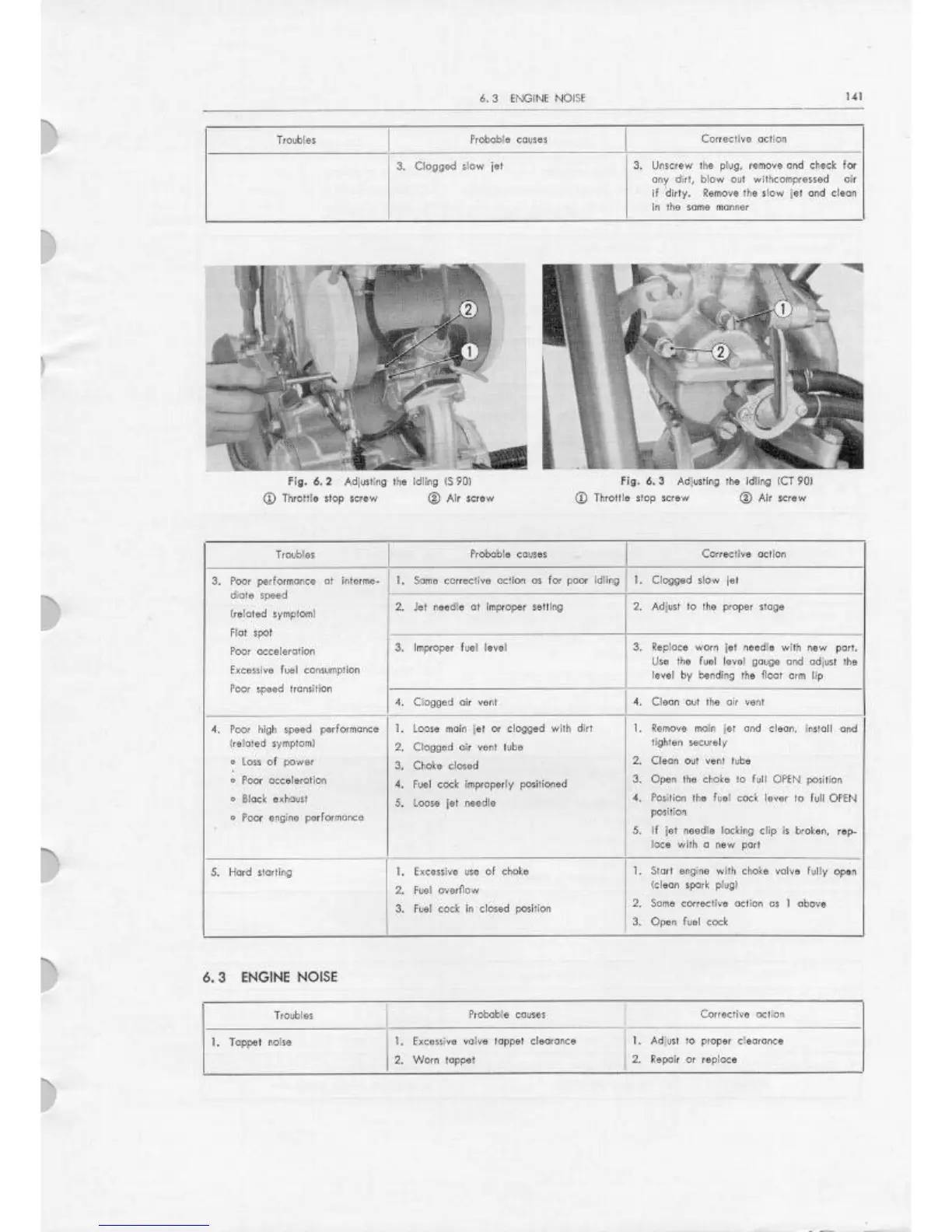Honda CD90 - Engine Noise; Adjusting the Idling