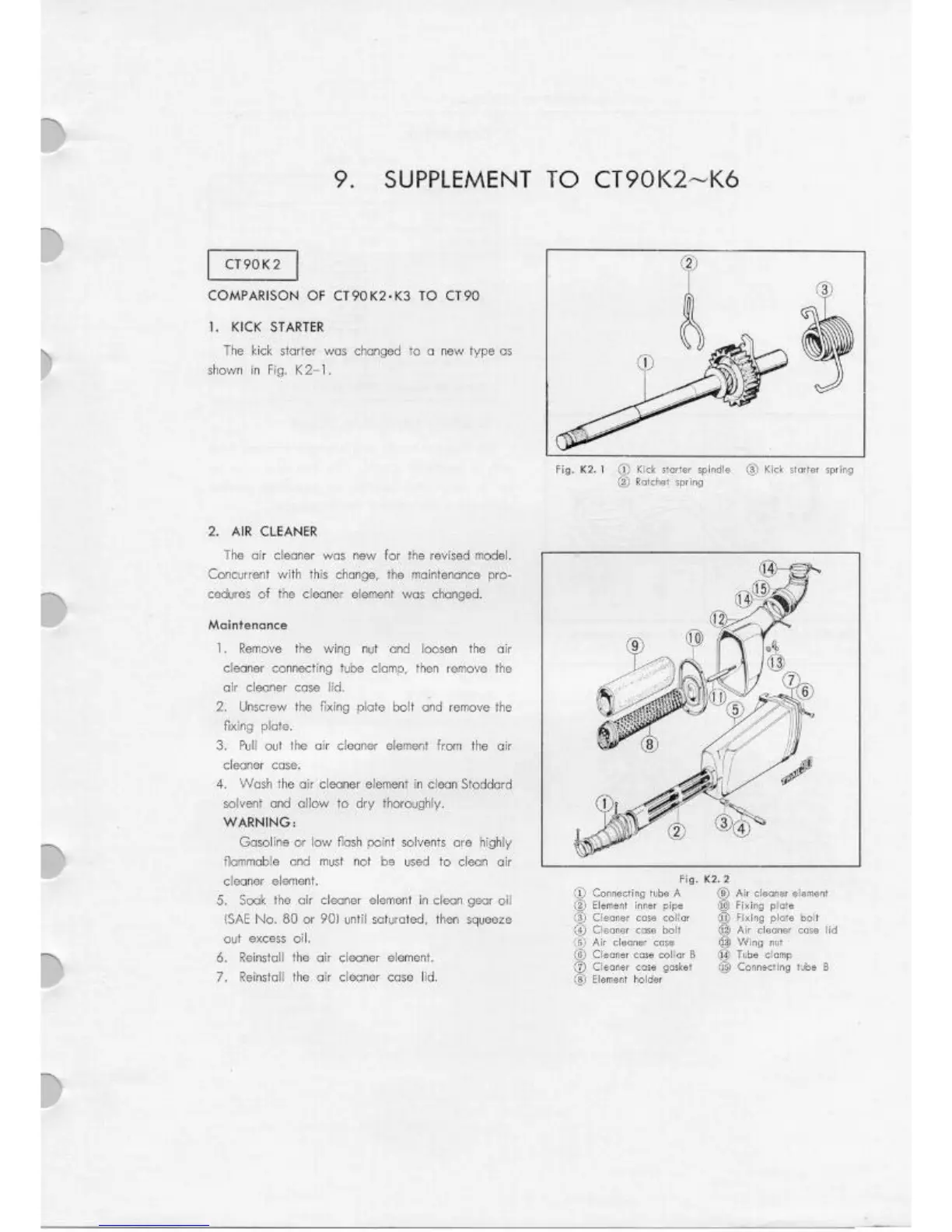 Honda CD90 - Supplement to CT90 K2-K6; Comparison of CT90 K2-K3 to CT90; Air Cleaner Maintenance