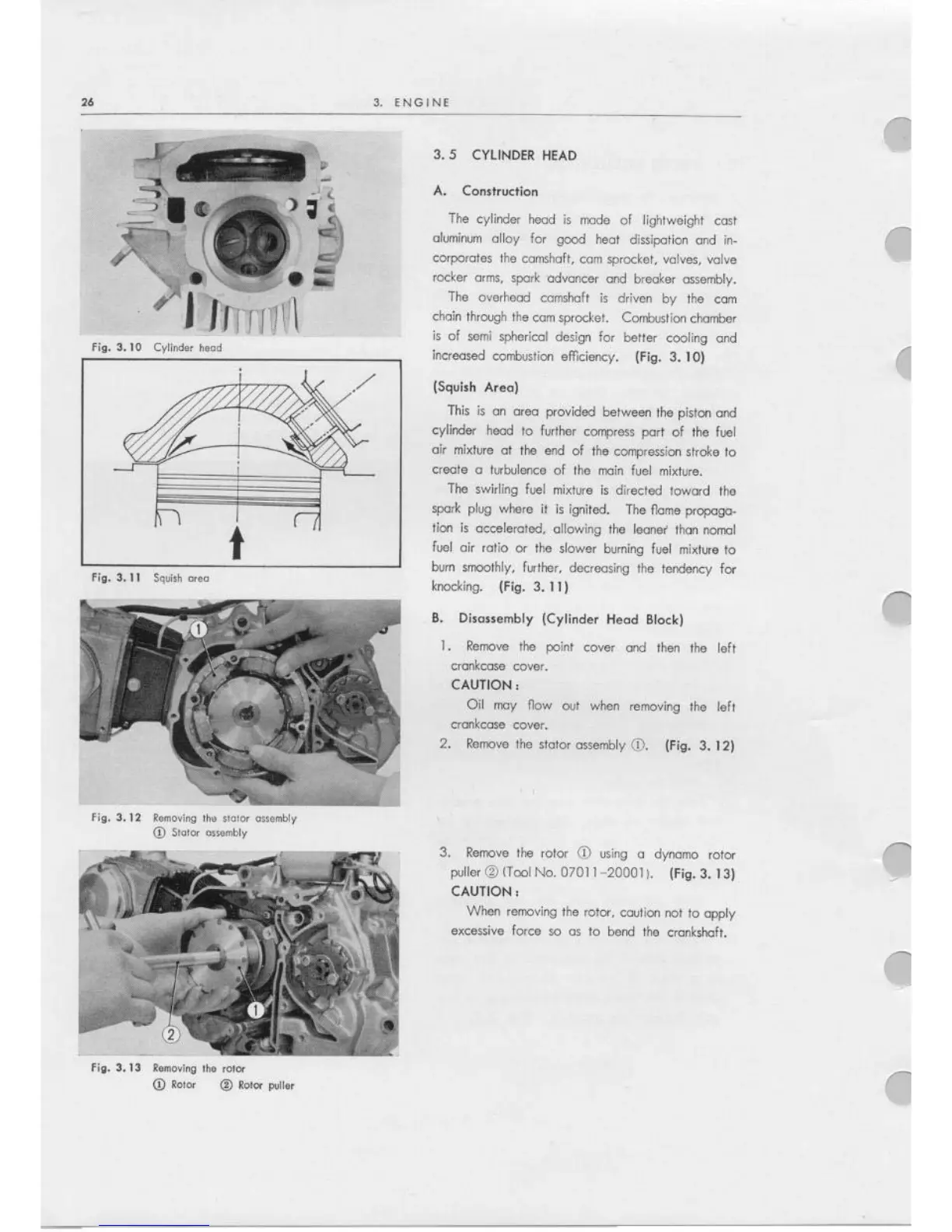 Honda CD90 - Cylinder Head Construction; Disassembly (Cylinder Head Block); Squish Area; Removing the Starter Assembly;The Rotor