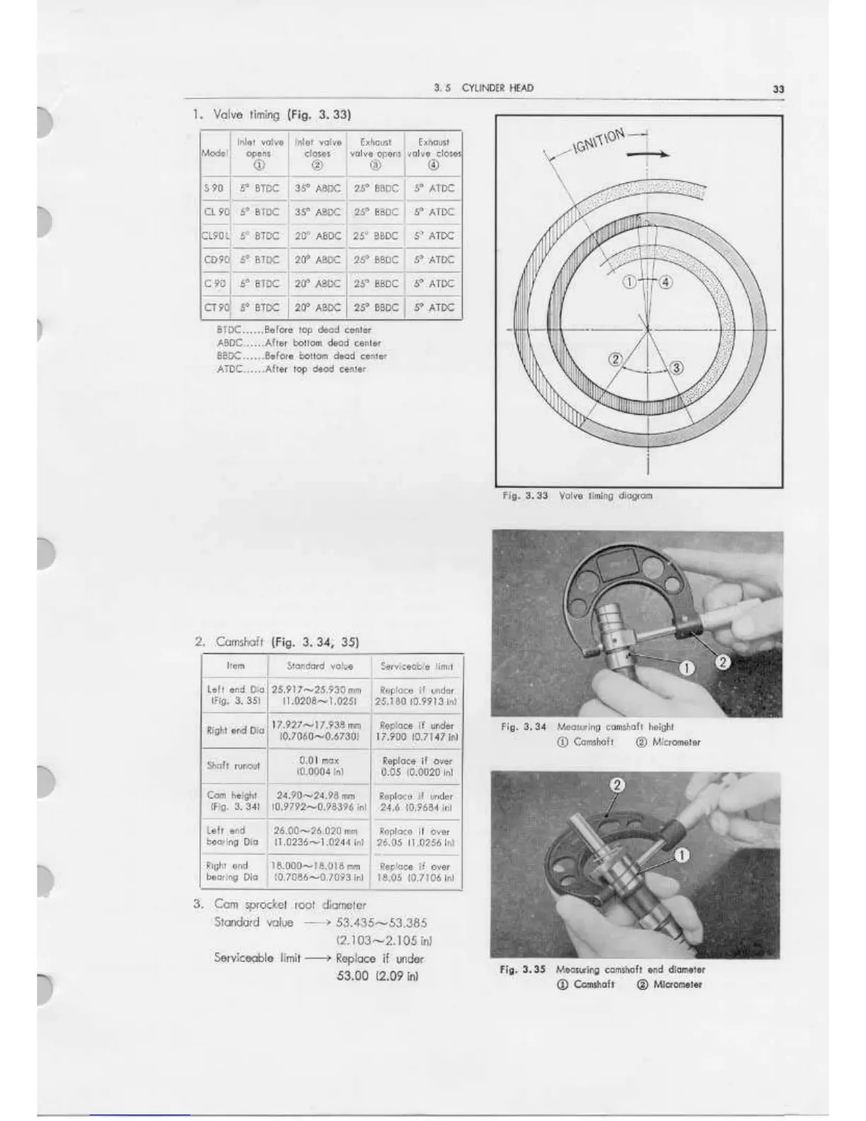 Honda CD90 - Valve Timing; Cam Sprocket Root Diameter; Measuring Camshaft Height