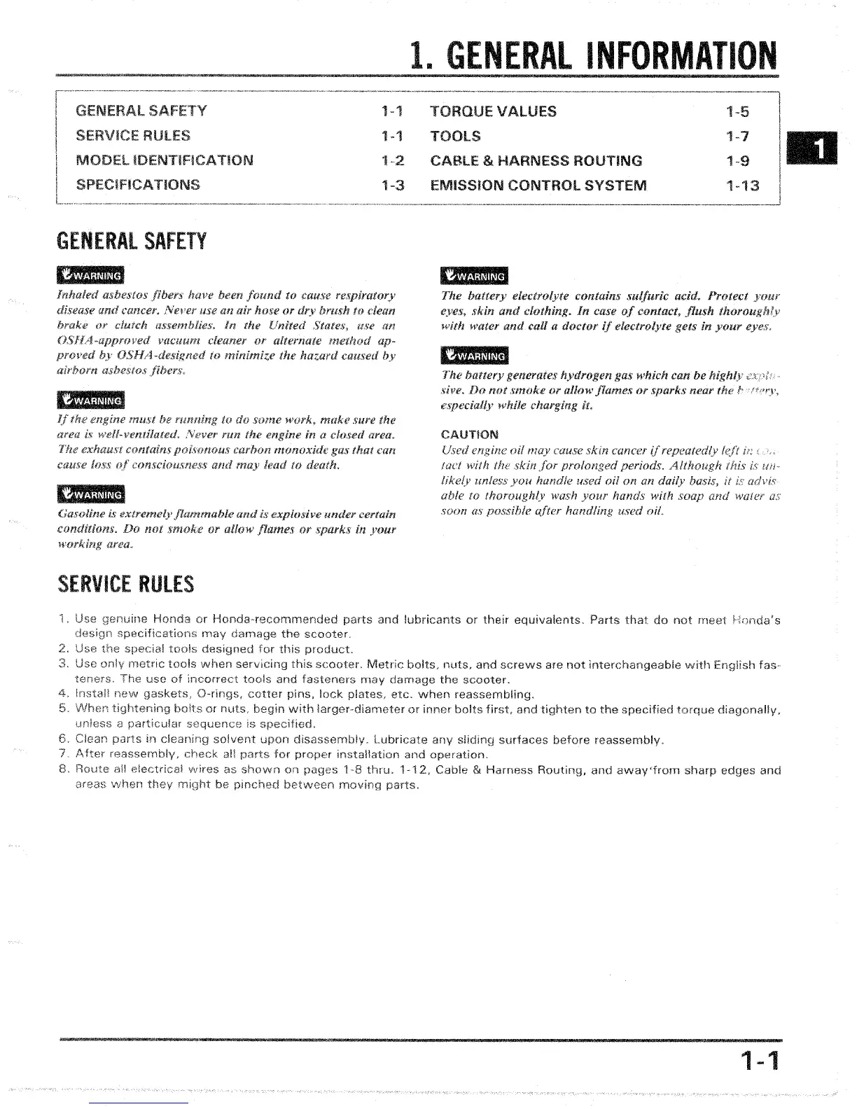 Honda CH80 - General Information; General Safety; Service Rules; Model Identification