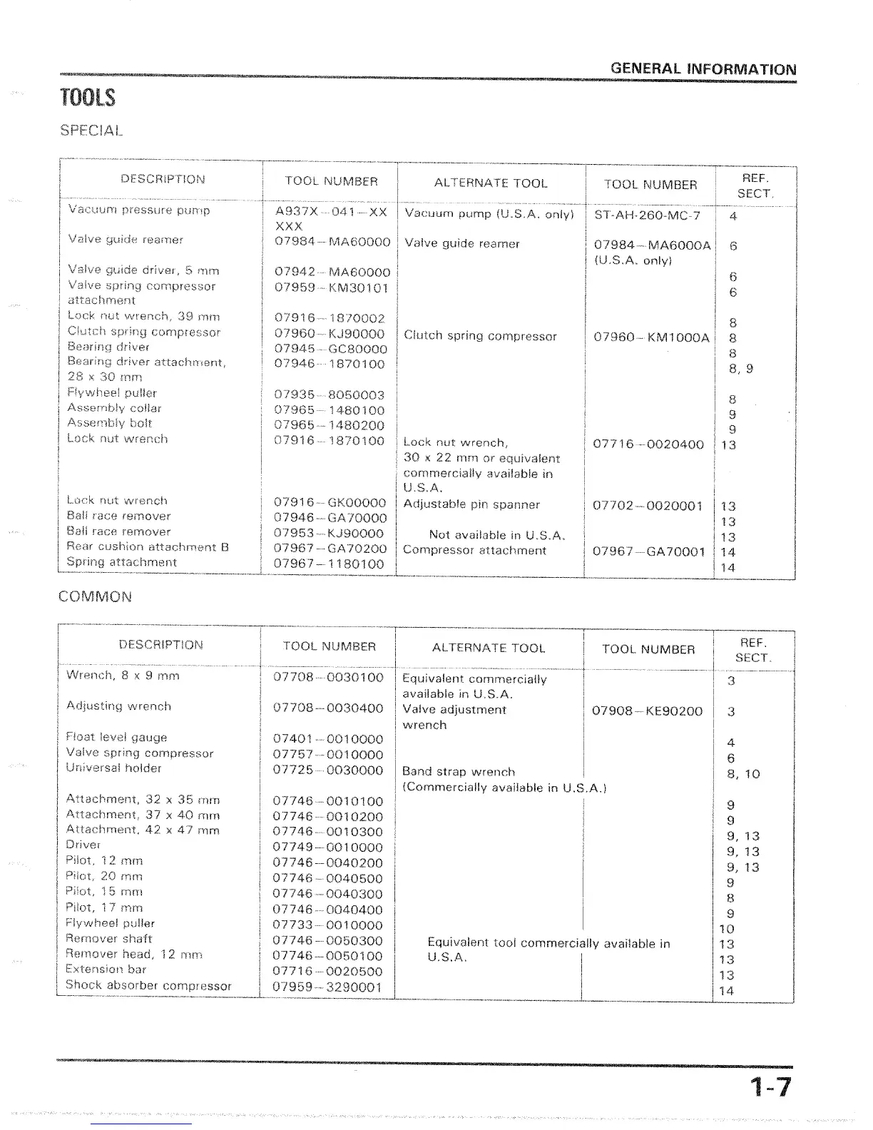Honda CH80 - Tools