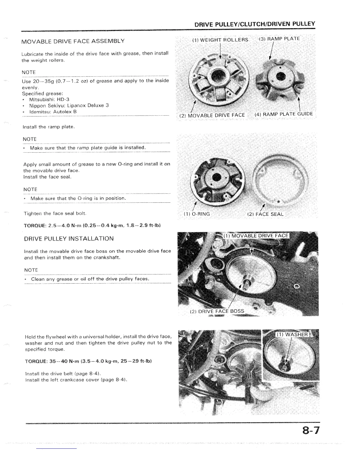 Honda CH80 - Movable Drive Face Assembly; Drive Pulley Installation