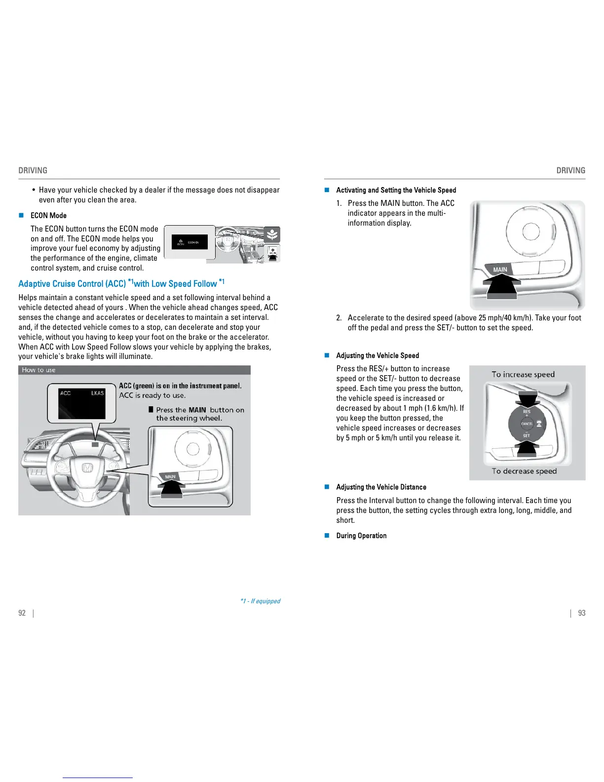 1. Press the MAIN button. The ACC