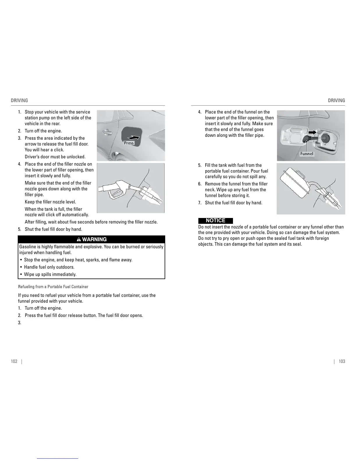 Do not insert the nozzle of a portable fuel container or any funnel other than