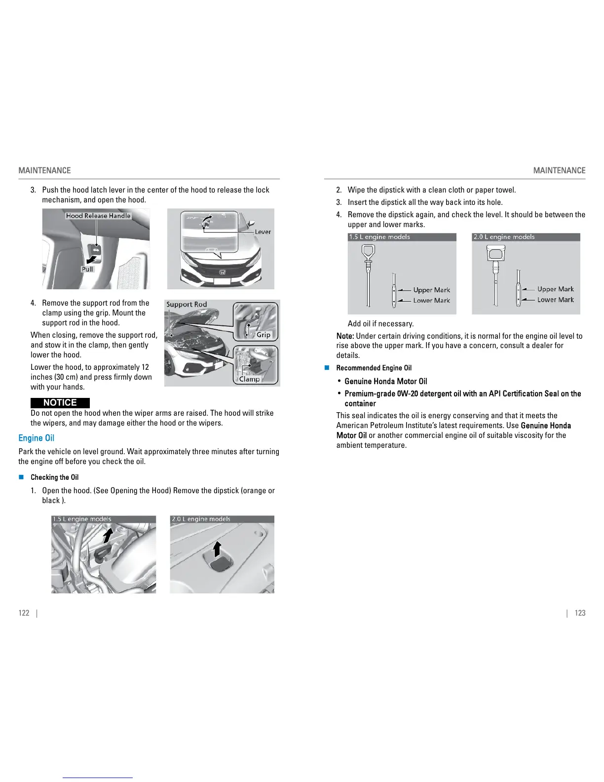 • Premium-grade 0W-20 detergent oil with an API Certification Seal on the