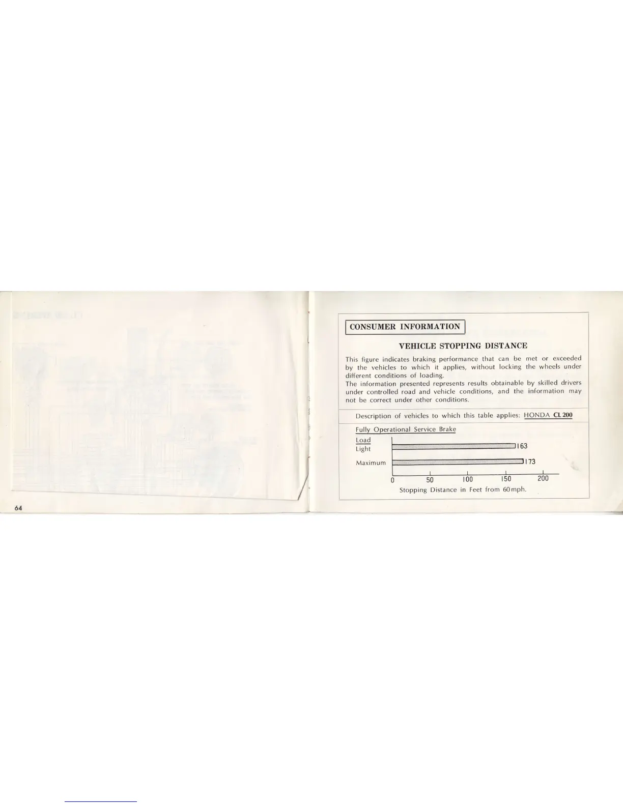 Honda CL200 - CONSUMER INFORMATION; VEHICLE STOPPING DISTANCE