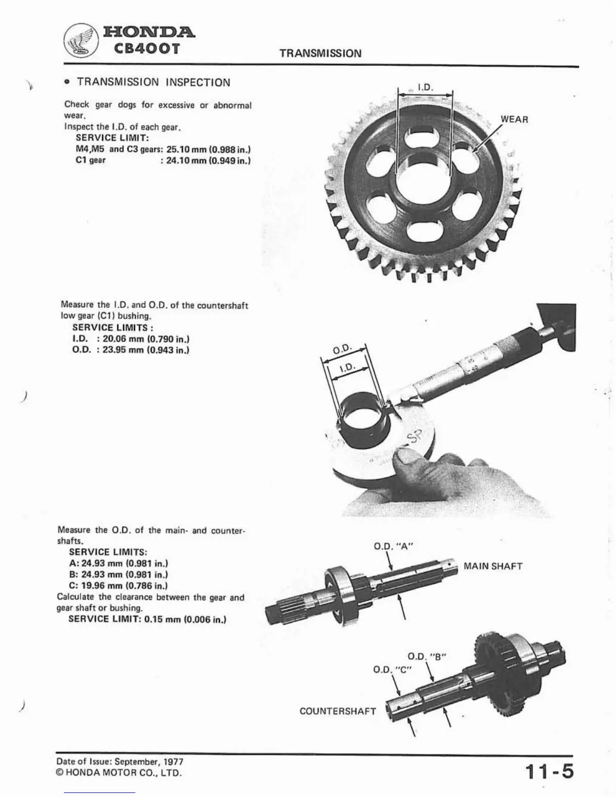 Measure the I.D. and O.D. of the countershaft