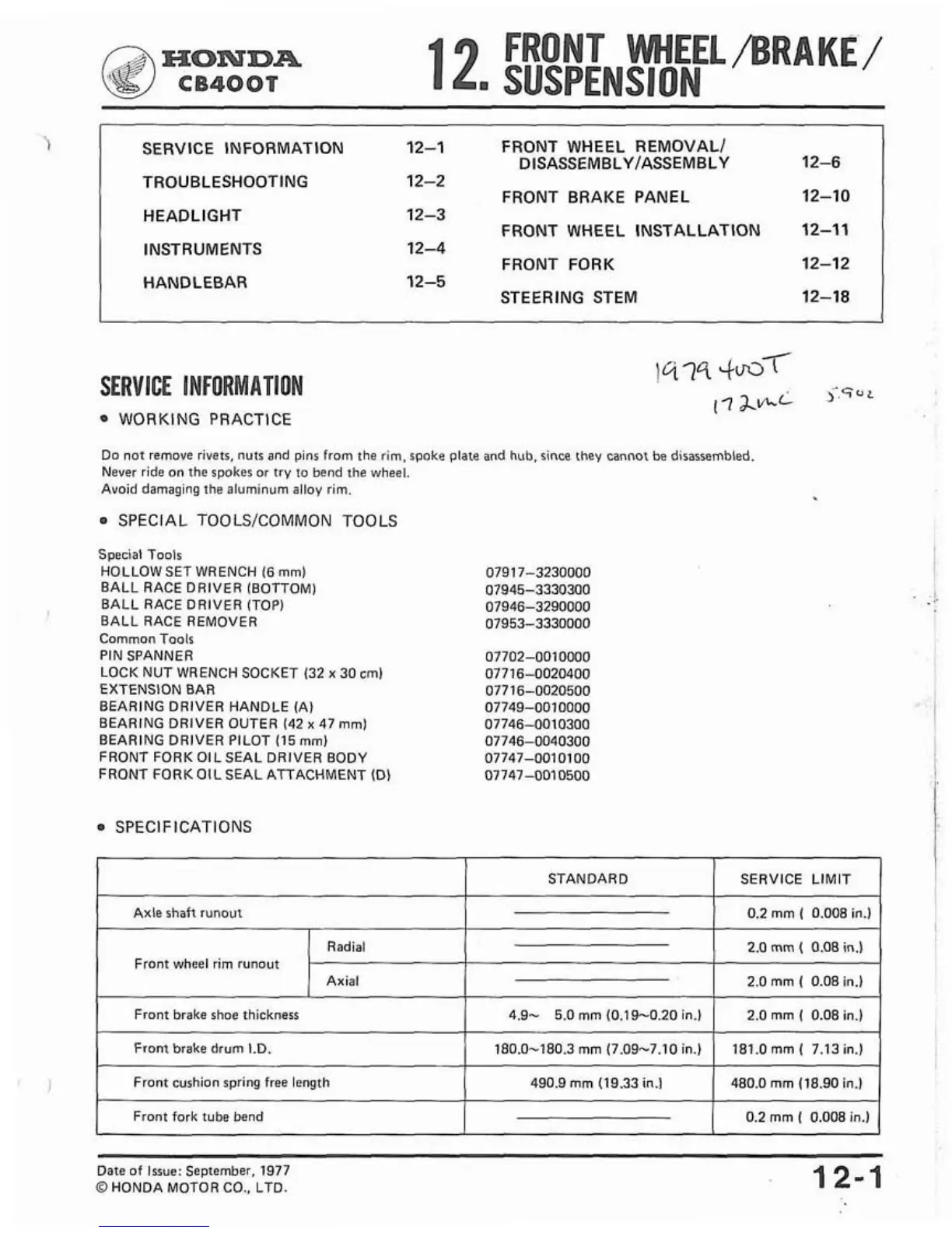 SERVICE INFORMATION 12-1 FRONT WHEEL