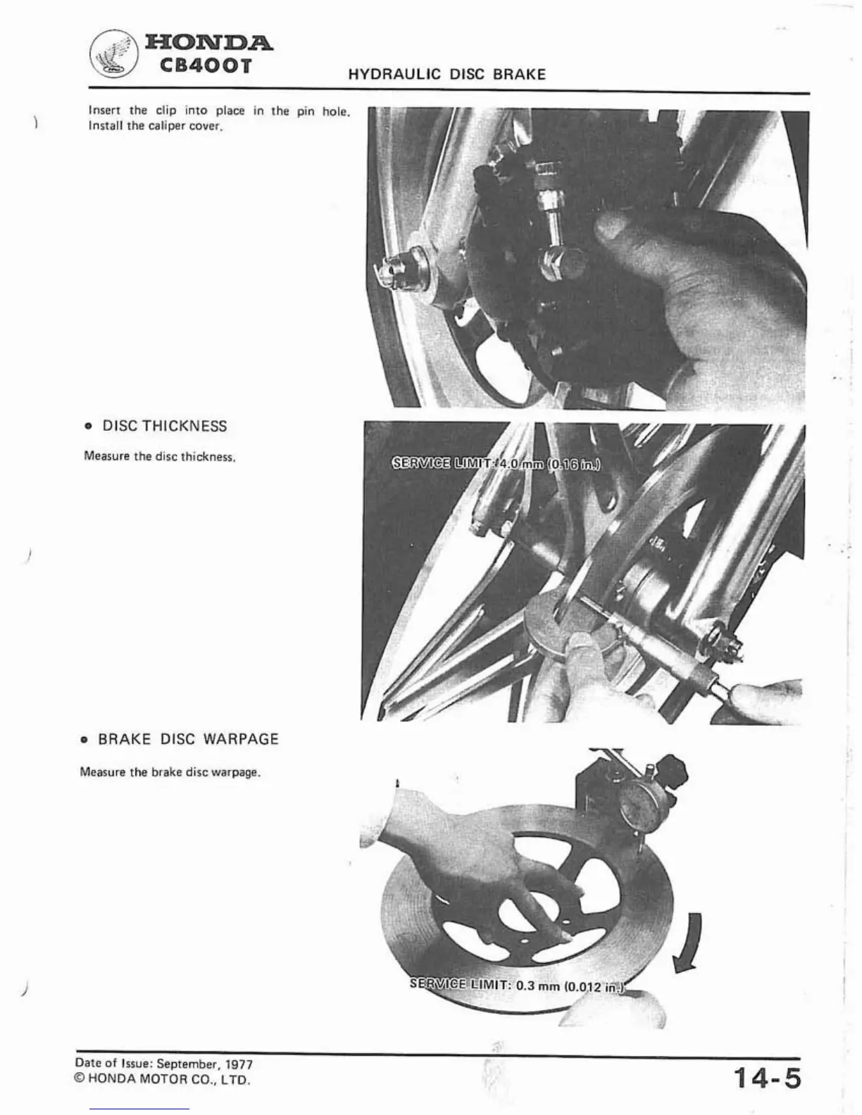 Honda CM400A - Brake Disc Warpage; Disc Thickness