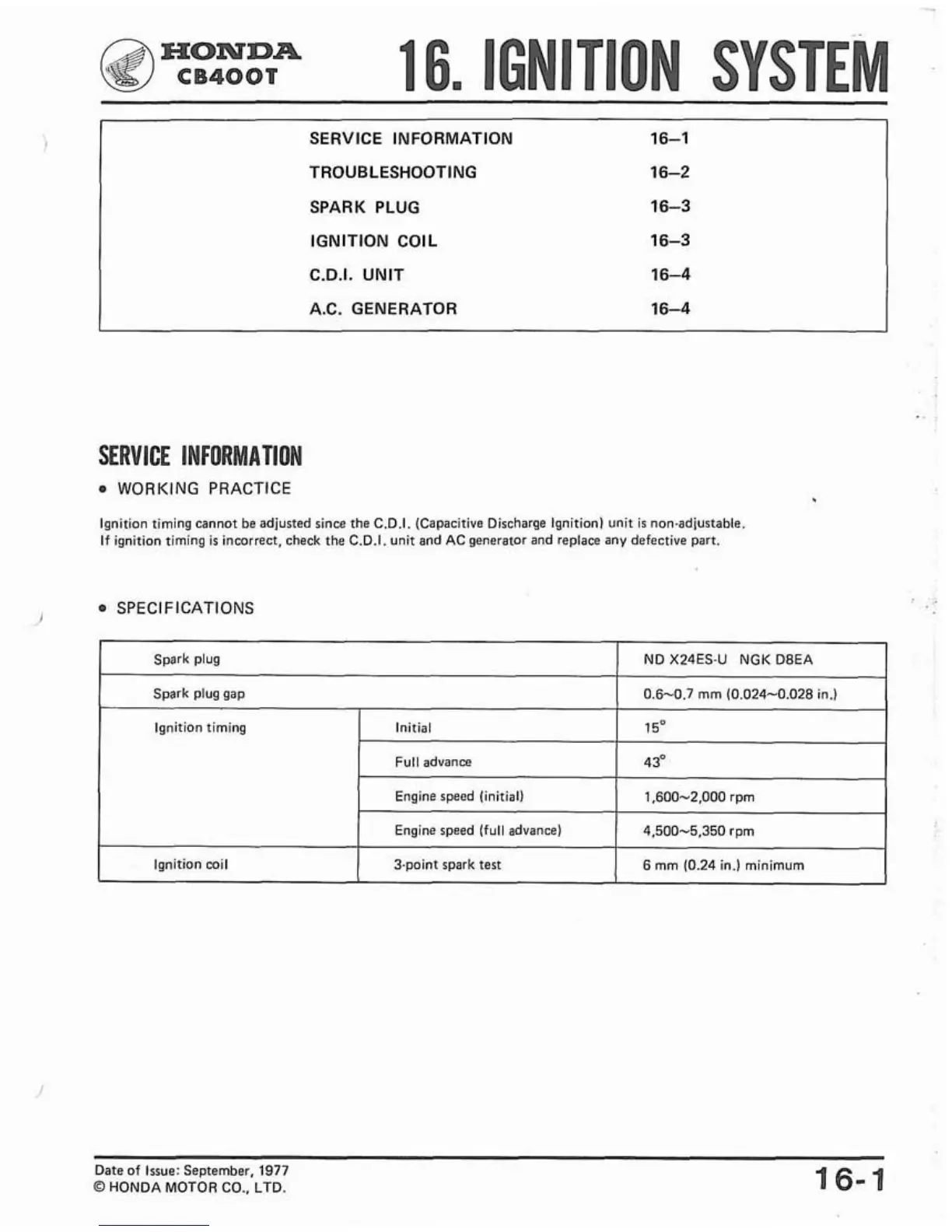 incorrect, check the C.D.I. unit and AC generator and replace any defective part.