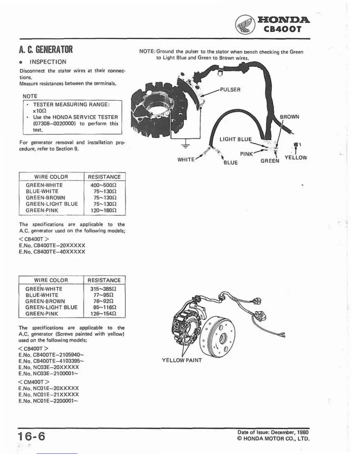 N0TE:Ground the pulser to the stator when bench cneckins the Green