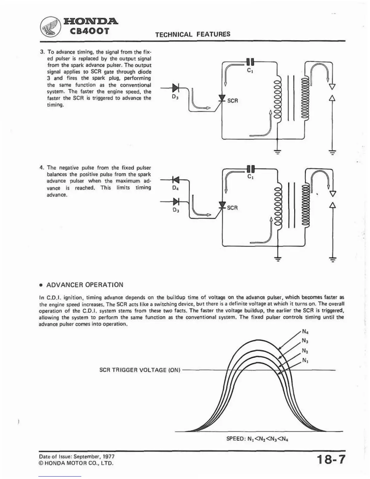 operation of the C.D.I. system stems from these two facts. The faster the voltage buildup, the earlier the SCR
