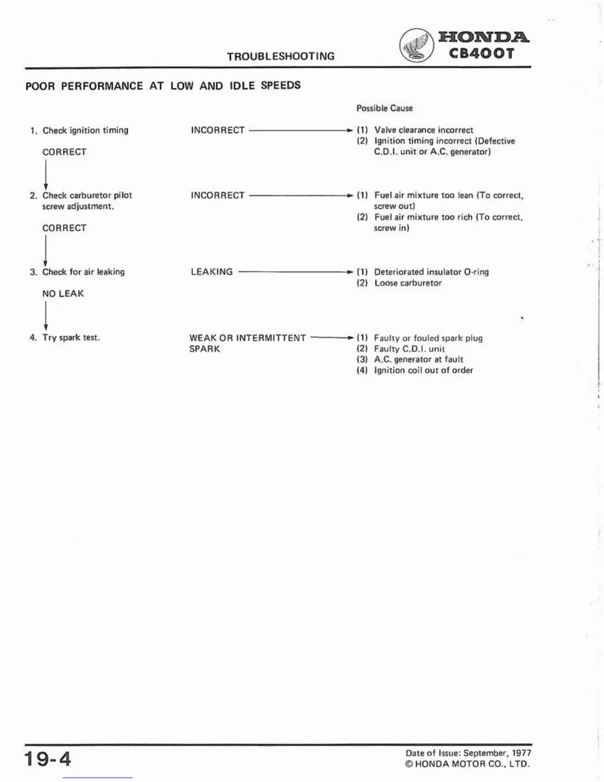 (1) Fuel air mixture too lean (To correct.