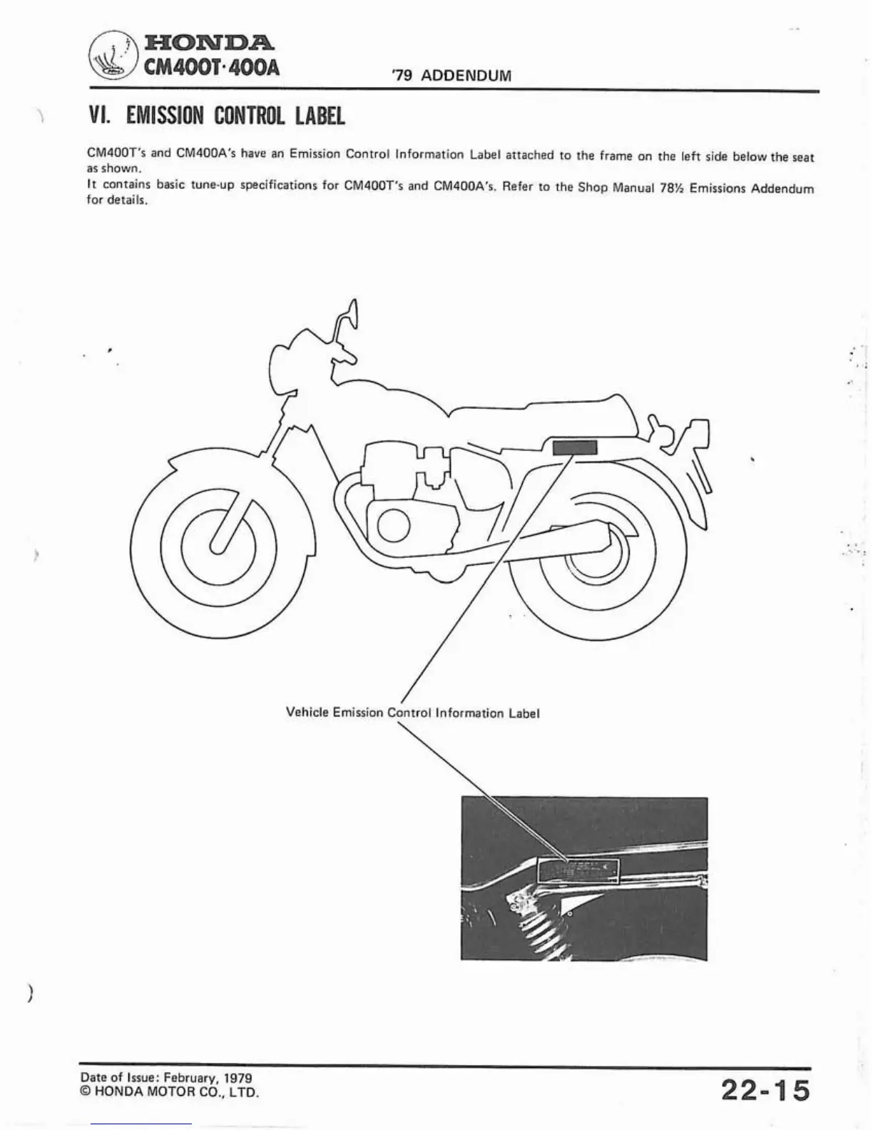 CM400T's and CM400A's have an Emission Control Information Label attached to the frame on the left side below the seat