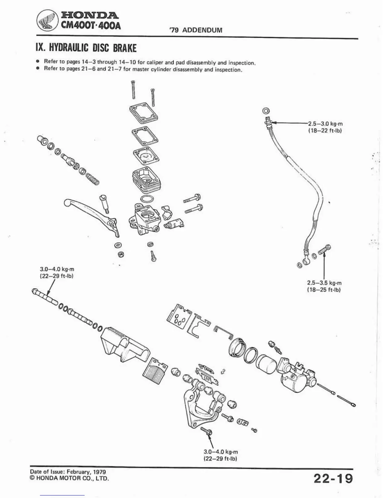 Refer to pages 14-3 through 14-10 for caliper and pad disassembly and inspection