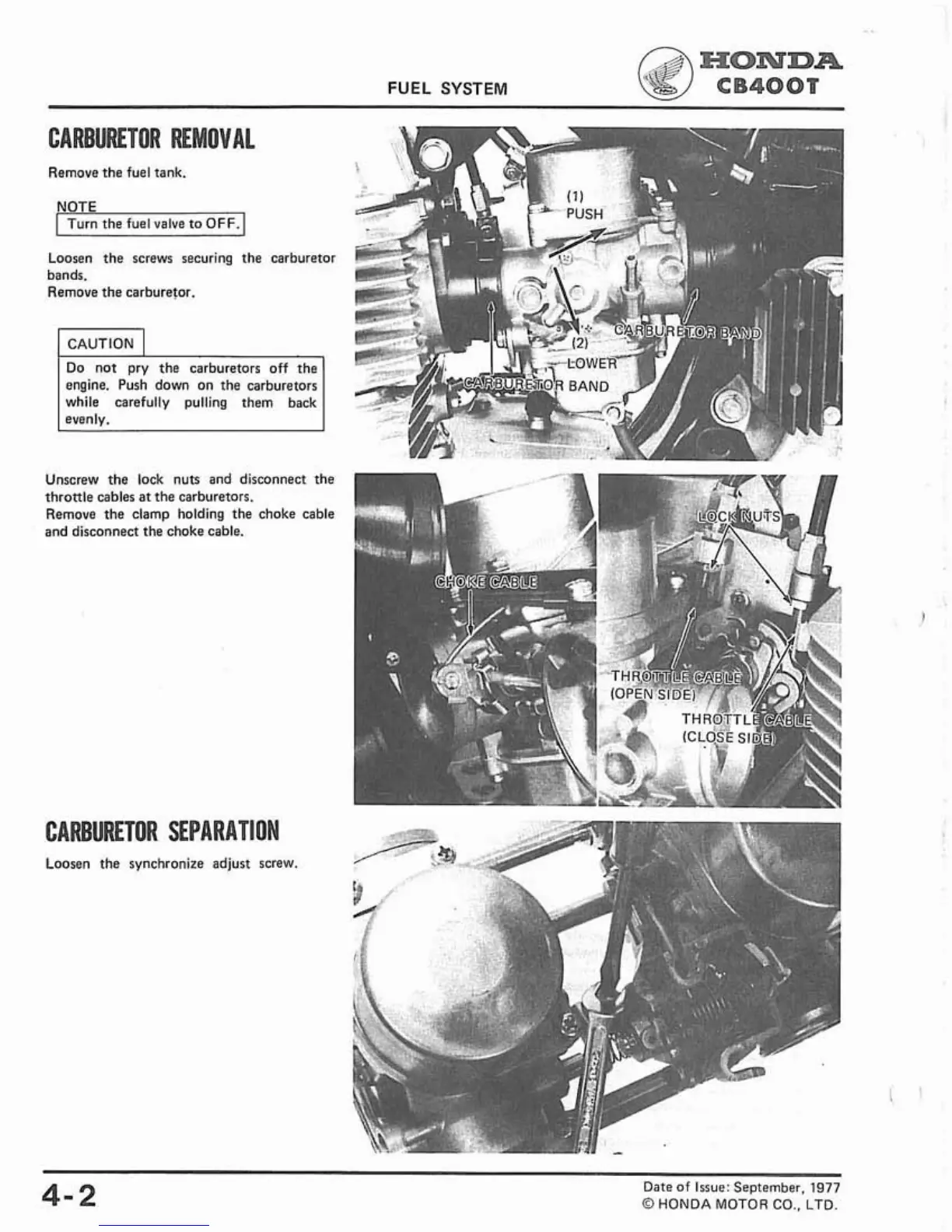 CARBURETOR SEPARATION