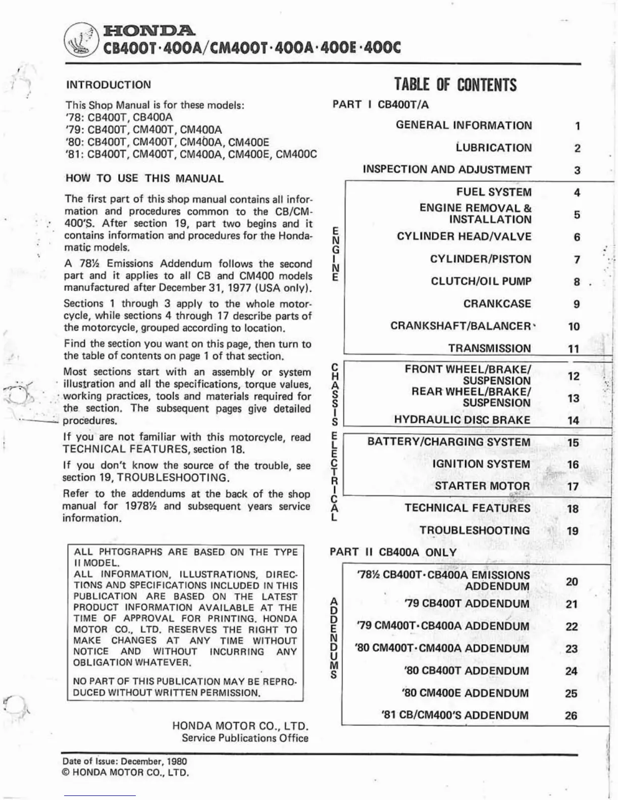 CB400T. CM400T, CM400A. CM400E, CM400C