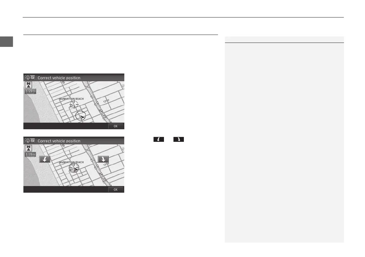 H HOME button u Settings u Navigation u Map tab u Correct Vehicle