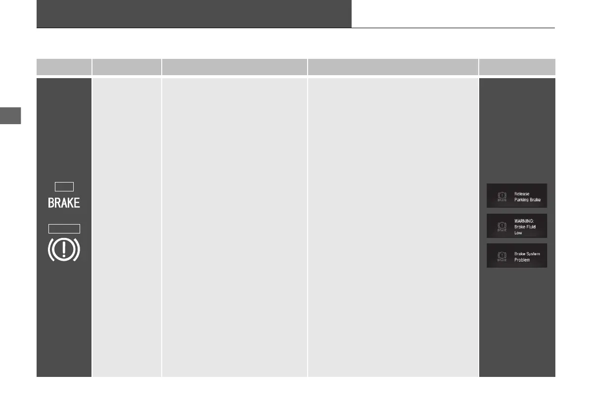 Comes on when the parking brake