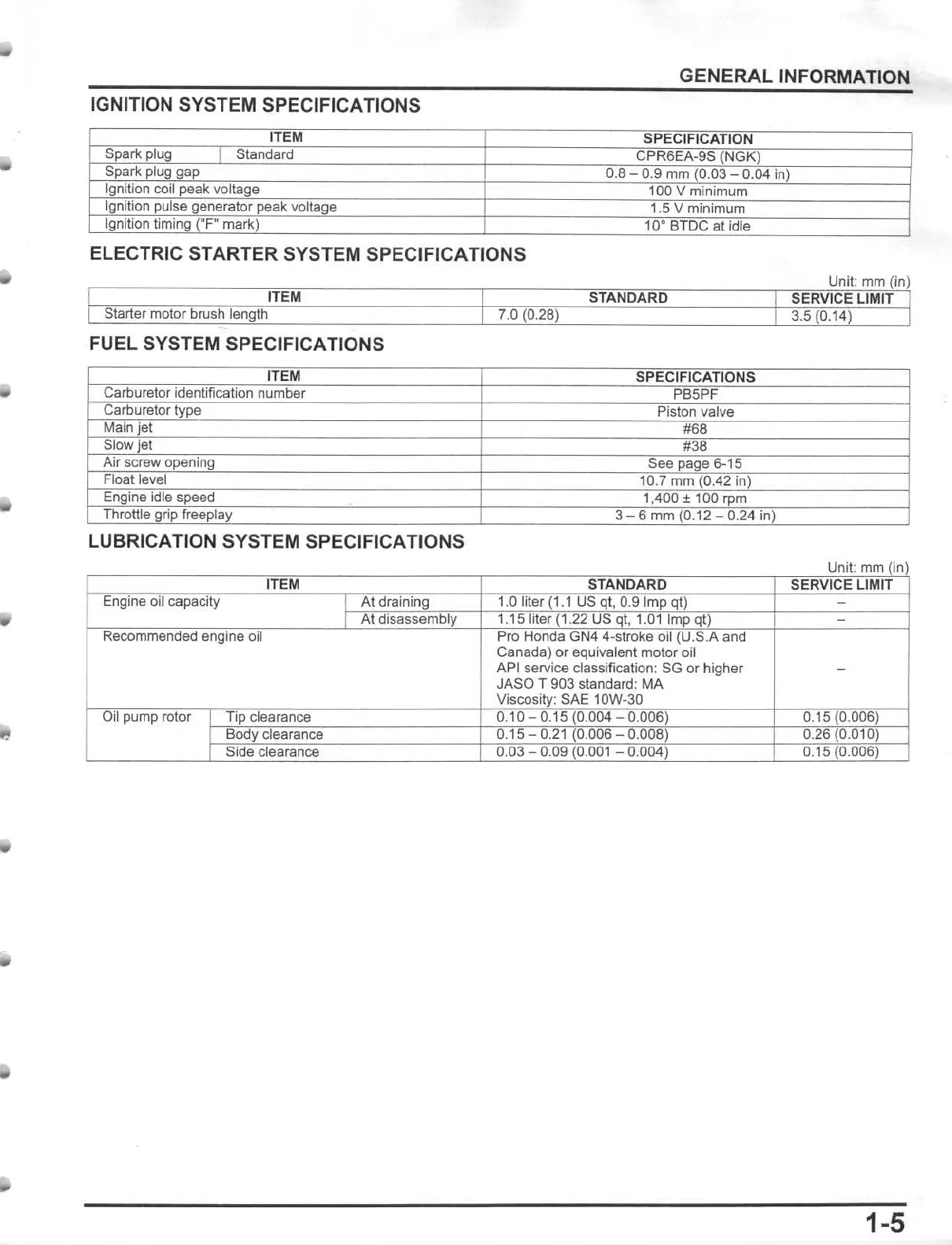 ELECTRIC STARTER SYSTEM SPECIFICATIONS