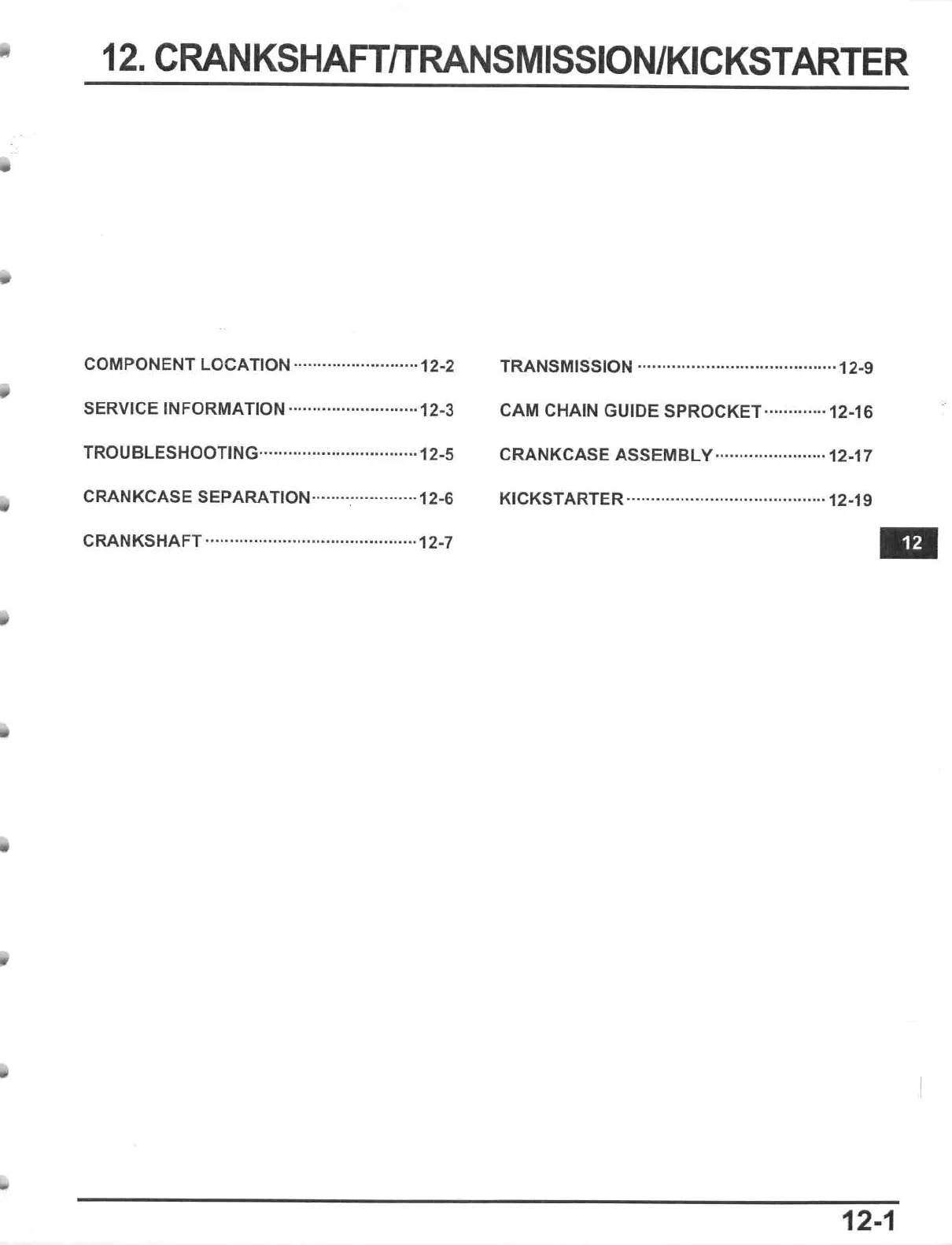 CAM CHAIN GUIDE SPROCKET············· 12-16
